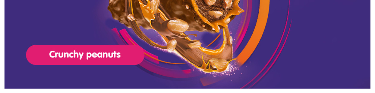 Centre Filling 72%* - Peanuts (25%*), Sugar, Interesterified Vegetable Fat, Liquid Glucose, Milk Solids, Hydrogenated Vegetable Oil, Cocoa Solids, Invert Sugar, Humectant (422), Iodised Salt, Emulsifiers (322, 471), Flavours (Nature Identical and Artificial (Vanilla) Flavouring Substances); Milk Chocolate 28%*-Sugar, Cocoa Butter, Milk Solids (4%*), Lactose, Cocoa Solids, Fractionated Fat, Emulsifiers (442, 476), Flavours (Natural, Nature Identical and Artificial (Vanilla and Caramel) Flavouring Substances)