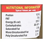 Nutrition per gram: 100g Protein: 13.9 g Fat: 7.8 g Energy (K.cal): 228.3 Carbohydrates: 30.45% Saturated Fat: 2.9 g Mono Unsaturated Fat: 0.81 g Poly Unsaturated Fat: 2.71 g