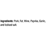 Pork, Fat, Wine, Paprika, Garlic, And Sal Nutritional Facts per serving size 100g: Energey-82kcal/342kj,protein-10g,Carbohydrate -2g, Fat-6g