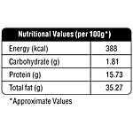 Nutritional Facts per serving size 100g: Energey-388kcal/1606kj,protein-15.73g,Carbohydrate -1.81g, Fat-35.27g