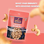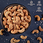 Enjoy premium roasted cashews with the right amount of salt that makes for a perfect healthy snack. The product is highly rich in fibre and proteins. It is also vegetarian and cholesterol-free, which makes it a super healthy snack to munch on at any time of the day. It is also made with premium quality ingredients so that you don't have to compromise with taste and quality.