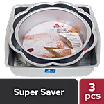 Rolex Cake Mould Combo - Square 8'', Flower 7.5'', Round 6.5, Aluminium, Silver, 3 pc