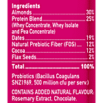 Almonds, Whey Protein, Whey Crisps, Lentil Protein, Prebiotic Fibre, Belgian Dark Chocolate, Honey, Cocoa, Flaxseed, Dates, Apple Fibre, Cranberries