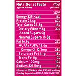 Nutrition per gram/ml: 100g Serving Size: 70g Energy: 329 Kcal Protein: 21.4g Total Carbs: 22.8g Dietary Fibre: 9.6g Added Sugars: 0g Natural Sugars: 15.8g Fat: 16.9g MUFA+PUFA: 12.4g Omega-3: 0.3mg Saturated Fat: 4.1g Trans Fat: 0g Calcium: 100mg Sodium: 321.5mg