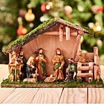 Santa Stores Pre Lit Nativity with Wooden Stable Figurine, 30 x 20 cm Set of 9