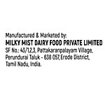 Manufactured & Marketed by: Milky Mist Dairy Foods Pvt. Ltd., #43/1, 2, 3, Patakaranpalayam Village, Perundurai Taluk, Erode District, Tamil Nadu, India, 638057 FSSAI Licence No.: 10017042003191