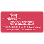 Manufactured by: Sree Annapoorna Foods, 643/3B Edayarpalayam road, Vadavalli, Coimabtore - 641041