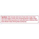 Coriander, Chili, Cumin, Fennel, Ginger, poppy seed, Turmeric, Salt, Pepper, Cinnamon, Star anise, Cardamom, Nutmeg, Mace, Refined Groundnut Oil.
