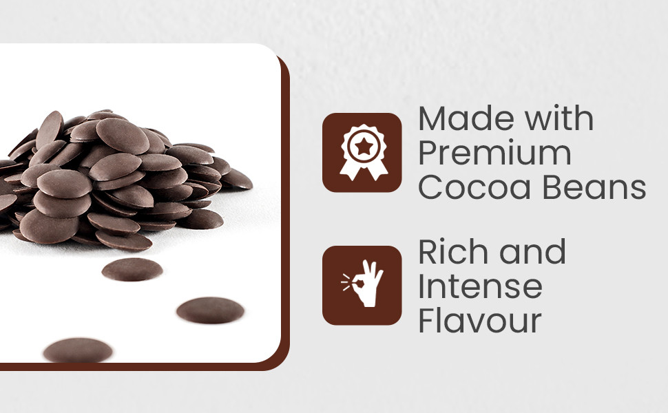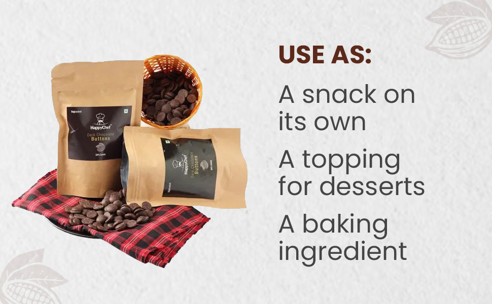 About the productHappyChef's Dark - Button Chocolate is a versatile product that can be used for cooking, making candy or enjoyed directly. These bite-sized treats have a hard exterior that melts instantly when consumed. Loaded with high-quality dark chocolate, the product offers healthy heart benefits and a boost of energy. Customers can also explore the brand's range of milk, white and dark baking bars, as well as spreads, dips and other gourmet options.