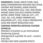Sugar, Wheat Flour, Eggs, Edible/Hydrogenated Vegetable Oils, Liquid Glucose, Water, Humectants (422,420), Emulsifiers (471, 491, 481, 1520), Raising Agent [500 (Ii), 541], Edible Common Salt, Class Ii Preservative (200), Acidity Regulator (260), Stabilizer (415). Contains Permitted Flavour(S) [Artificial Flavouring Substances (Vanilla And Butter)]. Hydrogenated Vegetable Fat Used - Contains Trans Fats