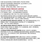 Manufacturer Name and Address: DREAM BAKE PRIVATE LIMITED , PLOT NO F1 F2 KANDHUA FOOD PARK , PHASE 2 WBIDC, PO- SANKRAIL , DIST HOWRAH PIN 711302 W.B