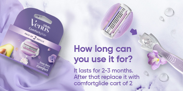 Gillette Venus Breeze is the perfect solution for smooth and easy hair removal razors for women. Simply apply water, glide Venus Breeze against the direction of hair growth and then wash and apply your favorite moisturizer! The in-built gel bars with avocado oil for glide and freesia scent contain rich body butter and leave you with your smooth Venus skin in a few minutes! Each refill lasts 2 months (depending on usage - basis full body hair removal once a week), post which you can purchase the refills pack. This hair remover can be used by any woman/girl on the face, arms, underarms, legs and full body including the sensitive bikini area.