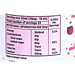 Serving Size: 30ml (1tbsp - 15 ml) Carbohydrate: 91 g Total sugar: 91 g Protein: 0.9 g Sodium: 30 mg
