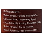 Water, Sugar, Tomato Paste(24%), Common Salt, Acidity Regulators(260), Thickening Agent(1442,440,415),Onion Powder, Garlic Powder,Mixed Spices & Preservatives(211).