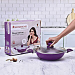 Wonderchef Non-Stick Aluminium Wok Pan/Kadai - With Lid, 26 cm, 3 mm, 3.2 l