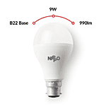 Nippo LED Bulb - Cool Daylight White, Round, 9 Watts, B22 Base, 1 pc