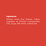 Refined Wheat Flour, Edible Vegetable Fat (partially hydrogenated oils), Sugar, Milk Solids, Iodised Salt.