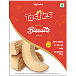 A traditional delicacy from the city of Hyderabad, these crescent-shaped cookies are buttery sweet treats that are baked to perfection. Tasties Biscuits - Moon is a box of melt in your mouth biscuits that are made with premium ingredients and a soft texture. This buttery goodness can be enjoyed with a hot cup of milk, or with a cup of tea, coffee. Put them on the table and watch it get devoured in seconds because we assure you, no one can resist these biscuits. Also, don't forget to explore the entire range of Tasties cookies with flavours such as cashew, dry fruit and much more.