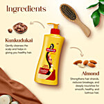 Aqua, Sodium Laureth Sulfate, Polydimethylsiloxane, Sodium Chloride, Cocomonoethanolamide, Guarhydroxypropyltriammoniuchloride, Carbomer, Stearamidopropyldimethylamine, Extracts Of Kunkudukai And Shikakai, Badam (Almond)