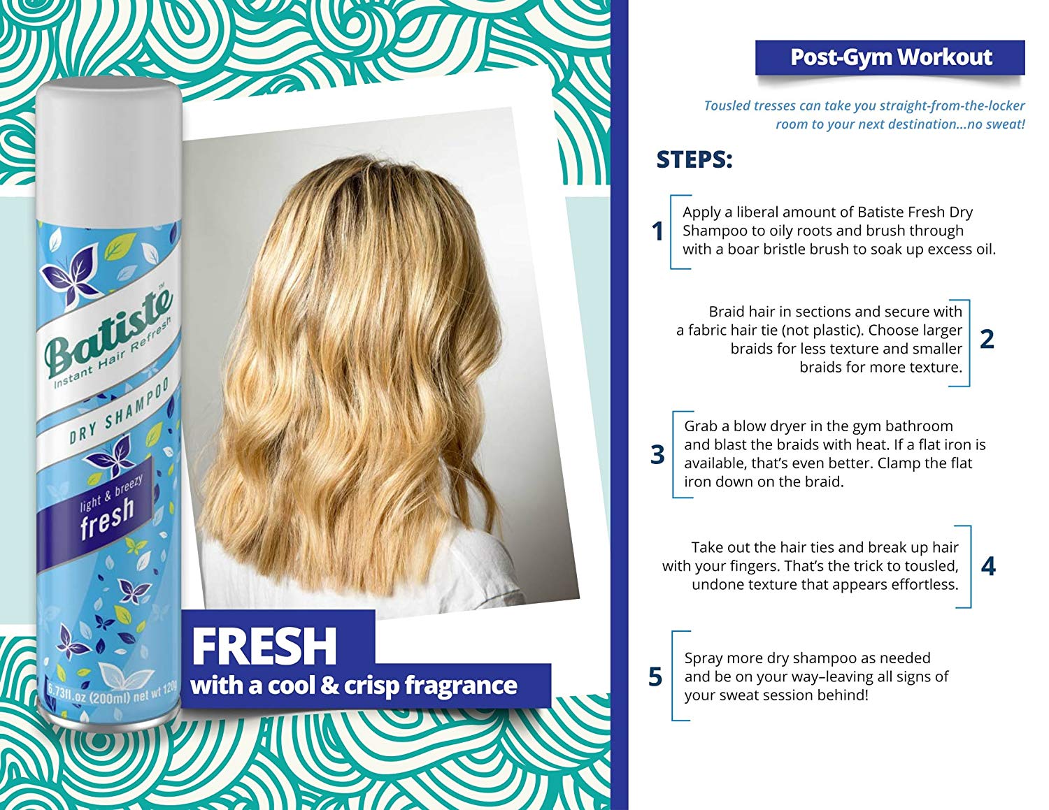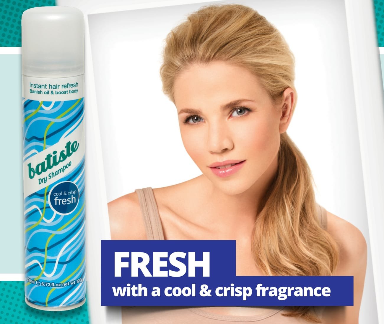 Batiste refreshes your hair between washes, leaving it feeling gorgeously clean and fresh with added Body and texture. No water required! With a range of products to choose from, Batiste makes every day a fabulous hair day. Example Usage Occasions - On the days between washes to quickly refresh your hair. In the morning before work. If you are running short of time or just want an extra half an hour in bed.
