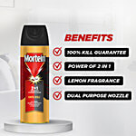 Banish pesky insects with the powerful Mortein 2-in-1 Insect Killer Spray. This dual-action formula targets both flying and crawling pests, providing swift protection against mosquitoes, flies, and cockroaches. Equipped with an advanced formula, it swiftly eliminates insects upon contact, offering quick and efficient results to reclaim your home from unwanted intruders. The targeted nozzle easily reaches into nooks and corners, ensuring no insect is left behind. Infused with a refreshing lemon fragrance, this insect killer not only eliminates pests but also leaves a pleasant scent. Whether you're dealing with mosquitoes buzzing around or flies invading your space, this trusted solution secures the area within 5 seconds, safeguarding your family against dengue-causing mosquitoes. With just a few sprays, you can enjoy a cleaner and safer environment, free from the hassle of pesky insects.