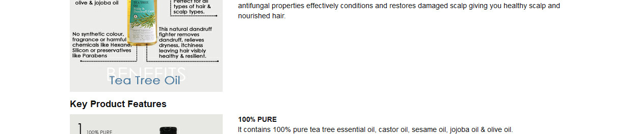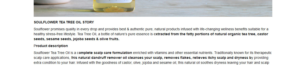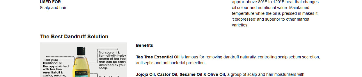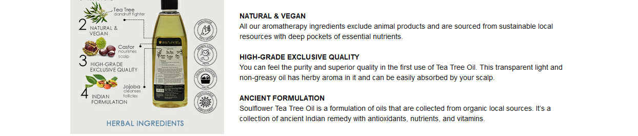 100% pure, natural and cold-pressed Soulflower tea tree anti-dandruff, hair oil is a vitamin-enriched complete scalp care formulation. This ideal dandruff remover oil cleanses your scalp, removes flakes, relieves scalp irritation and dryness while providing an extra condition to your hair.