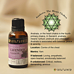 • Lavender essential oil’s depth of soothing and calming floral aroma relaxes your body and attunes Anahata; the heart chakra.