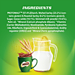 Toned Milk (80%), Water, Sugar, Protomalt {(2.8%)starch & [malted Barley (1.1%) (contains Gluten) & Starch]}, Cocoa Solids (1.1%), Acidity Regulators (340ii & 341(ii)), Stabilizers [412 & 407], Vitamins Carrier(maltodextrin), [nicotinamide, Pyridoxine Hydrochloride, Riboflabvin, Ergocalciferol, Cyanocobalamine, Sweetener (960) And Mineral (ferric Pyrophosphate). Contains Added Flavours (natural And Nature Identical Flavouring Substances)