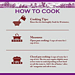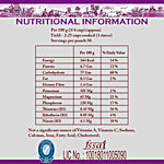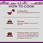 Nutritional Facts - Per 100 gms (3/4 Cup)(Approx) Yield - 2.25 Cups Cooked ( 3 Times ) Serving Per Pouch 50, Not a significant source of Vitamin C, Sodium, Calcium, Iron Fatty Acid and Cholesterol. Energy - 344 Kcal ,Protine - 6.7 Gm,Carbohydrate - 77 Gm, Fat 0.5 Gm,Dietary Fiber - 1.4 Gm,Potassium 105 Mg, Magnesium 65 Mg,Phosphorus - 120 Mg, Thiamine ( B1 ) 0.45 Mg, Riboflavin ( B2 ) 0.05 Mg, Niacin ( B3 ) 4.1 Mg.