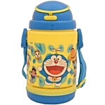 Yellow Spark Doraemon Hot & Cold Water Bottle with Plastic Outer Cover, Spring Loaded Bouncing Cap & Trendy Design, 360 ml