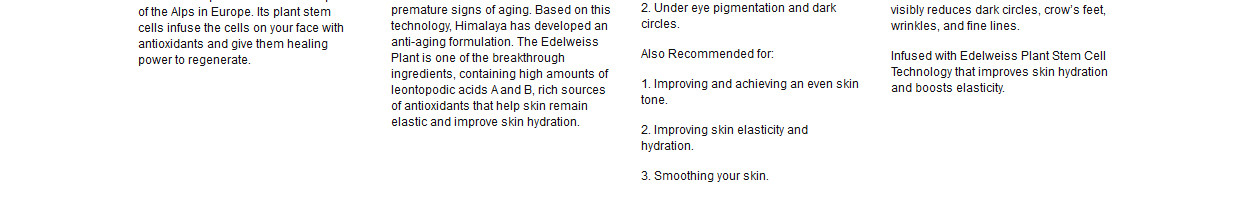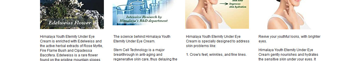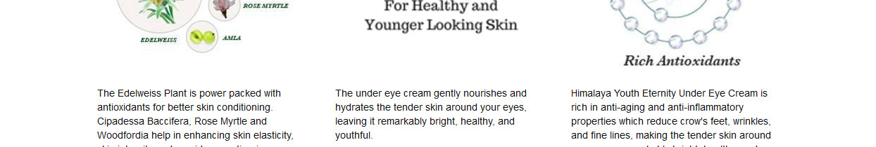 Himalaya Youth Eternity Under Eye Cream is a breakthrough anti-ageing formulation derived from Plant Stem Cell Research and Exotic Herbal Actives. Rich in anti-ageing and anti-inflammatory properties, this is a superior blend of ingredients like Edelweiss Plant Stem Cells, Woodfordia, Rose Myrtle, Cipadessa, and Amla.