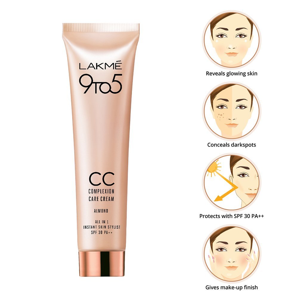Everyday makeup can take a lot of time and sometimes can even look made up. If you are looking for a cream that can take care of your delicate skin and give you that glow seamlessly, Lakme 9 to 5 CC Cream is a perfect choice. This cream acts as your invisible skin stylist and lets you get that perfect look of makeup + skincare for any occasion. It may be work, party or simply an evening with friends; your personal stylist will help you get the right look for it all. It’s time to move on to a simpler regime without compromising on skincare. The new Lakme 9 to 5 CC Cream moisturizes your skin to give you a nourished and refreshing glow with the benefits of make-up. With 4 shades - Beige, Honey, Bronze and Almond, this CC cream blends into your skin completely to give you that invisible makeup finish.