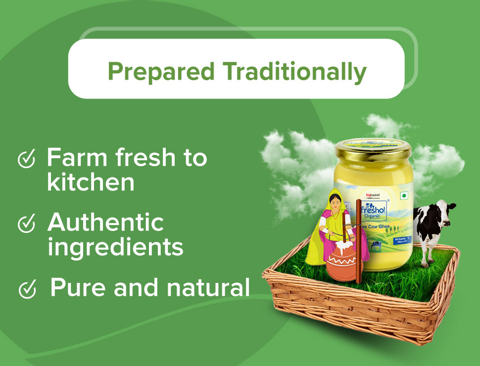 Ghee is an important product in an Indian home and therefore it is very important to always purchase a good quality ghee. We at Bigbasket always try to bring up the best products for our customers and always try to give the best quality products. We have launched a wide variety of ghee on our website. You can easily buy ghee online from our website. The organic cow ghee price is far more affordable on Bigbasket as compared to the price given by the retailer.