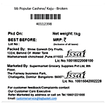 Manufactured by : Bangalore M.M Marketing #572, 1st, 2nd, 3rd Floor, 32nd 'D' Cross, 11th Main, Wth Block Jayanagar, Bangalore - 560011 Fssai Lic No11217334000038 | Bangalore SRI Gayatri Trading Company #37, 2nd Floor, Raghuvanahalli, Kanakapura Road, Bangalore - 560062 Fssai Lic No11216302000385 | Kolkata MARK COMMODITIES 80 DR SURESH SARKAR ROAD KOLKATA-700014 Fssai Lic No12816019000954 | Chennai M.M Marketing (Chennai) No. 7/1 2nd floor, 1st Main, Off 100ft Road, Domlur 2nd Stage, Bangalore - 560071 Fssai Lic No10015042002228 | Patna M/S ASG VISION B-295, MITRA MONDAL COLONY , SAKET VIHAR , PATNA - 800002 Fssai Lic No10416000000798 | Ahmedabad Shree GaneshDry Fruits , 132/4, Behind Of water tank, Walhekarwadi, Chinchwad, Pune-411033 Fssai Lic No11511037008060 | Mumbai UNISHA ENTERPRISES PVT LTD H-33 APMC Market - I, Phase - IIVashi Turbhe RoadMasala MarketVashiNavi Mumbai Fssai Lic No11517017000043 | Pune SHREE GANESH DRYFRUITS Sr. No. 1132/4 near Watar Tank Gurudwara Walhekarwadi Chinchwad, 411033 Fssai Lic No11514037011392 | Delhi R GOPAL IMPEX PVT. LTD. 56/2/2 & 56/9/2/2/2, VILLAGE WAJIDPUR, SABOLI DISTT. , SONEPAT, HARYANA-131029 Fssai Lic No10817020000104 | Vijayawada-Guntur OMKARESWARA AGENCIES (VJA) , 2/14/190, syamalanagar, 1stline, guntur-5220006 Fssai Lic No10117030000126
