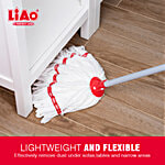 Liao cotton flat mop comes with a heavy-duty plastic body rod and has been designed for floor cleaning in a larger area. The use of a heavy-duty plastic rod improves the life of the mop whereas iron pipe used in locally available mops results in the low life of the product as the iron pipe gets rusted in due course of time.