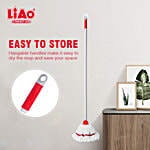 Liao Microfibre Floor Mop With Steel Stick - A130028, Round, For Cleaning, 26X18X155 cm, Red
