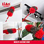 Liao Micro Fibre Cleaning Duster With Long Handle - Super Dust Absorbent, Soft, Red & Grey, 1 pc