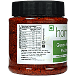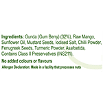 Gunda (Gum Berry) (32%), Raw Mango, Sunflower Oil, Mustard Seeds, Iodised Salt, Chilli Powder, Fenugreek Seeds, Turmeric Powder, Asafoetida, Contains Class II Preservatives (INS211)