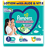 New Pampers complete skin comfort pants have ANTI-RASH* lotion with vitamin E & aloe vera, to keep your baby’s skin protected. Newborn baby diapers containing Lotion with Vitamin E & Aloe vera helps protect your baby’s delicate skin from diaper rash and irritation. Best diapers with Ultra Absorb Core, provide your baby a new type of dryness overnight - breathable dryness. Magic gel locks wetness away to provide up to 12 hours of dryness. The new and improved product design enables a comfortable fit, closer to the baby’s body and a flexible waist band that adapts to baby’s movements for a comfortable fit.