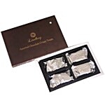 White Chocolate (Sugar, Cocoa butter, Milk solids, Emulsifier-Soya Lecithin, Vanilla flavour), Milk Chocolate( Sugar, Cocoa butter, Cocoa solids, Milk solids, Emulsifier-Soya Lecithin, Vanilla flavour), Dark Chocolate(Sugar, Cocoa butter, Cocoa solids, Emulsifier-Soya Lecithin, Vanilla flavour), Coffee powder, Rice Crispy, Sugar, Pineapple Flavour, Glazing agent (Gum Arabic, Sucrose, Glucose syrup, Vegetable Oil, Citric Acid, Sorbic Acid, Water)