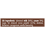 Skimmed Milk 84%, Cream 9%, Sugar, Fat Reduced Cocoa Powder (1.5%) Dextrose, Thickener, Carrageenan, Vanilla Flavouring.
