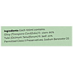 Nutrition per gram: 100g Serving Size: 50ml Giloy (Tinospora Cordifolia) fr. stem: 80% Tulsi (Ocimum Tenuiflorum) fr. leaf: 20%