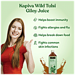 Reimagine your wellness routine with the Kapiva Wild Tulsi Giloy Juice, a powerful blend of nature's most beneficial herbs. Packed with the goodness of tulsi and giloy, this juice strengthens your immune system and supports your overall health. Carefully handpicked from organic sources, this plant-based, gluten-free and keto-friendly juice is free from added sugar, artificial flavours, and chemicals. Tulsi and giloy work in harmony to be anti-bacterial and anti-inflammatory, helping you fight off common colds, coughs, and viral infections. Enjoy the rich antioxidant properties and the detoxifying and cleansing benefits of this juice, which also aids digestion and reduces body aches and headaches. Shake well, dilute with water, and consume twice daily for a natural and effective way to enhance your vitality and well-being.