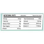Serving Size: 30 ml Energy: 5 Kcal Total Carbohydrate: 1.03 g Total Fat: 0 g Calcium: 7.22 mg Dietary Fibre: 0 g Potassium: 39.01 mg Total Sugars: 0 g Vitamin C: 17.84 mg Protein: 0.21 g