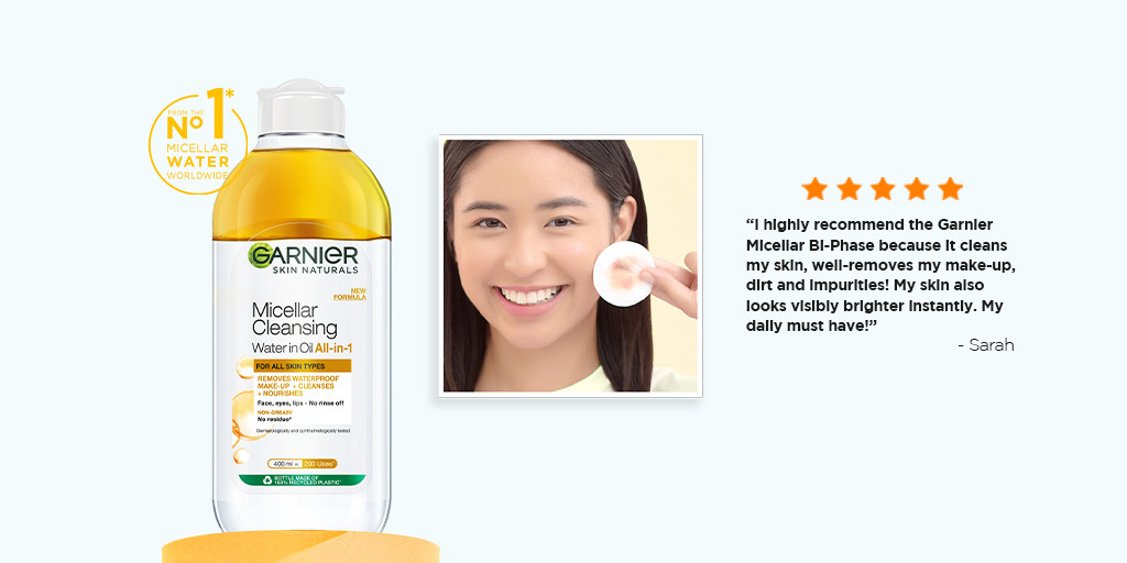 Garnier Micellar Oil-Infused Cleansing Water is perfect for heavy and waterproof make-up. If lighter make-up is more your style, you can try Garnier Micellar Cleansing Water.
