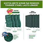 1. Brand: Scotch-Brite. 2. Type: Scrub Pad. 3. Material: Non-Woven. 4. Colour: Green. 5.