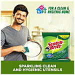 Scotch-Brite Scrub Pad is made with high-quality material. It is a multipurpose scrub that can be used to clean utensils as well as the kitchen platform. It is a versatile kitchen sponge that efficiently cleans your utensils and kitchen, leaving it spotless. This scrub pad cleans stubborn stains easily without any hassle. It can also be used for heavy-duty scrubbing. The material absorbs soap and water.