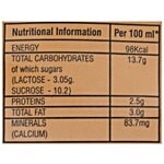 Tonned Milk , Carrot Extract, Sugar, Contains permitted colour and added flavour (real flavouring substance - Cardamom). Nutritional information per 100ml.Energy - 98kcal, Total Carbohydrates of which Sugars(lactose - 3.05g, Sucrose - 10.2) - 13.7g, Proteins - 2.5g, Total Fat - 3.0g, Minerals(Calcium) - 83.7mg