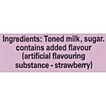 Tonned Milk , sugar.Contains added flavour (Natural flavouring substance - Strawberry). Nutritional information per 100ml. Energy - 98 kcal, Total Carbohydrates of which Sugars (lactose - 5.0g, Sucrose - 8.7g) - 13.7g, Proteins - 3.3g, Total Fat - 3.0g, Minerals (Calcium 127mg) - 0.7g
