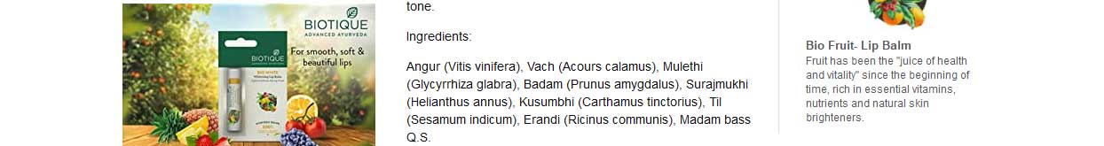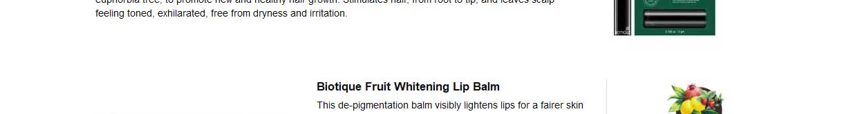 Biotique is synonymous with serious skin and hair care developed from Ayurveda. Biotique treatments do not cover up problems - they eliminate them. Infused with botanical extracts, this safe and secure Biotique Bio Fruit Whitening Lip Balm nourishes and brightens your lips, hydrating and lightening lip pigmentation for a healthy, radiant look. Enriched with natural extracts, it helps de-pigment, soften, and re-establish blood circulation to retain natural moisture, leaving your lips moisturised and evenly toned for a youthful, vibrant appearance. Crafted with botanicals, no animal testing, and eco-friendly, recyclable packaging, this Biotique lip balm is the perfect solution to achieve an even-toned, glowing pout.